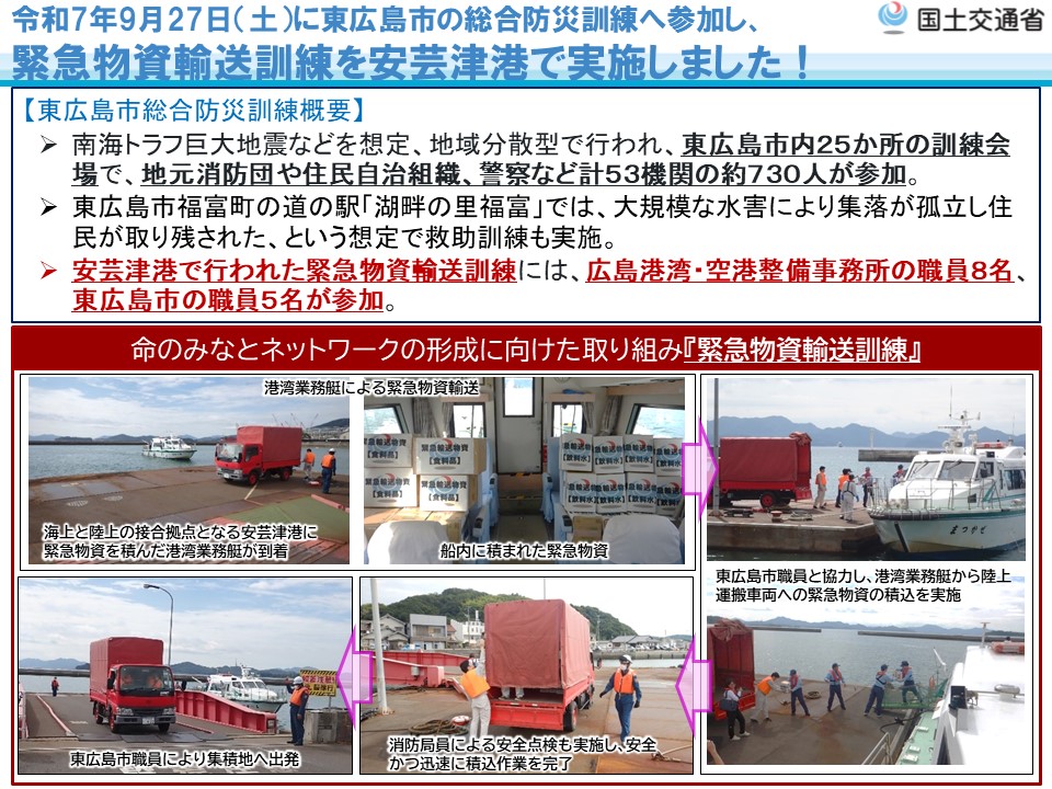 東広島市の総合防災訓練へ参加し、緊急物資輸送訓練を実施しました!