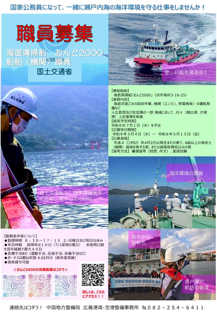 【募集】海面清掃船「おんど2000」船舶(機関)職員